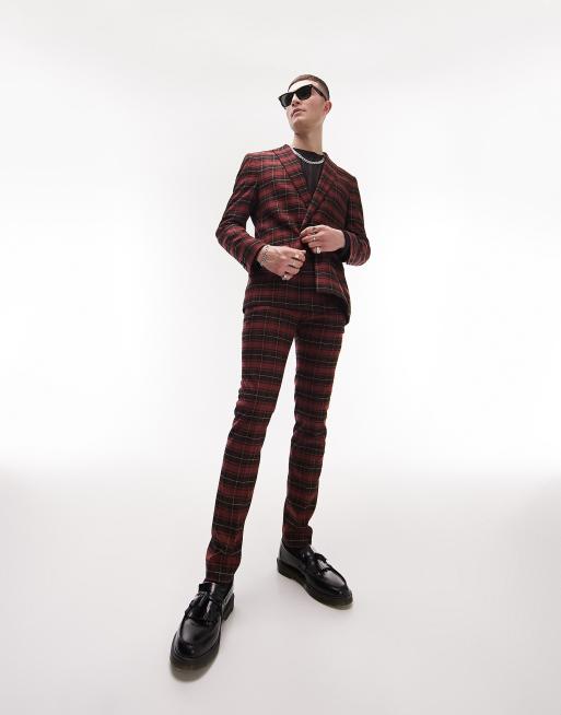 Topman super skinny tartan checked suit trousers in red
