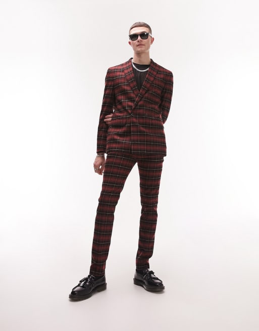 Topman super skinny tartan suit in red