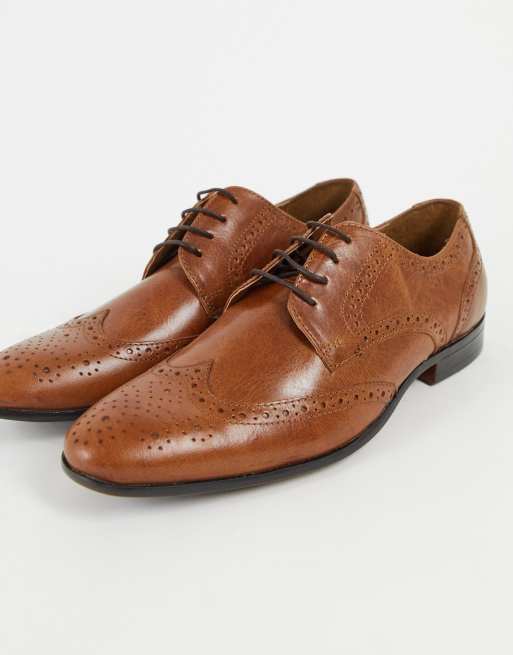 Topman tan real leather bedd brogue shoes