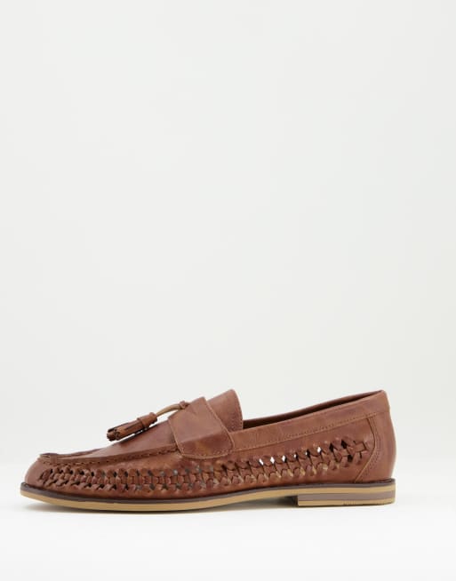 Topman tan weave morgan tassel loafers