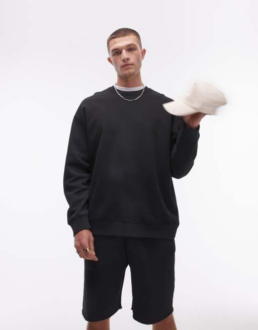 Topman washed oversized sweatshirt in black