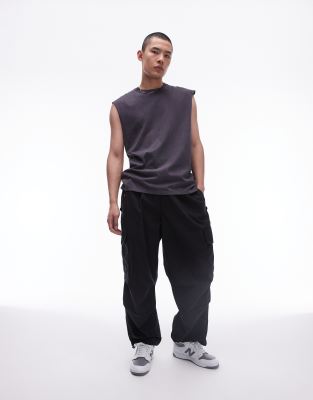 Topman wide cargo trousers in black