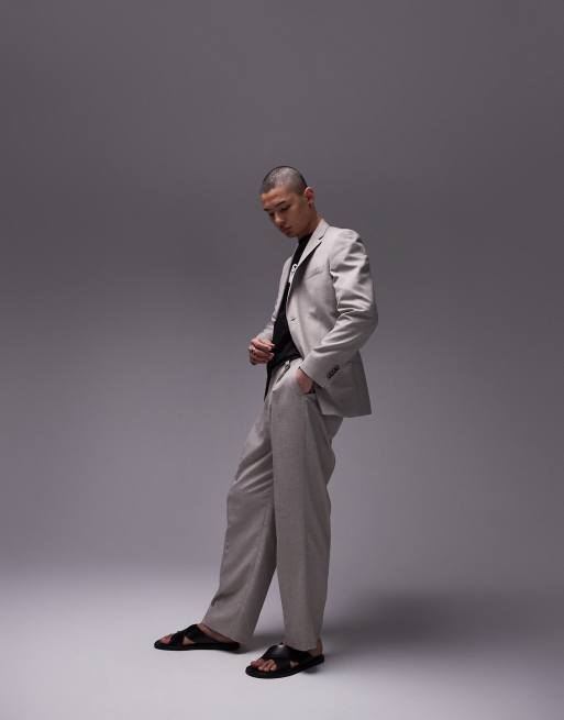 Topman wide leg linen blend suit trouser in stone