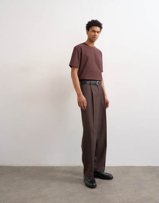 Topman wide leg pinstripe trousers in brown