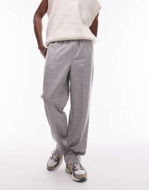 Topman wide leg wool mix elasticated waistband trousers in grey