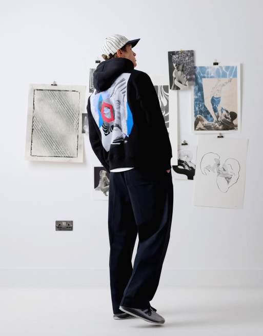 Topman x Becky Baier oversized fit hoodie with front and back patch print and embroidery in black