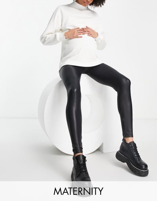 Topshop Maternity leather look legging in black