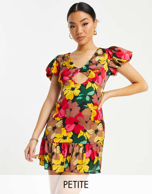 Topshop petite bold floral tie front mini dress in multi