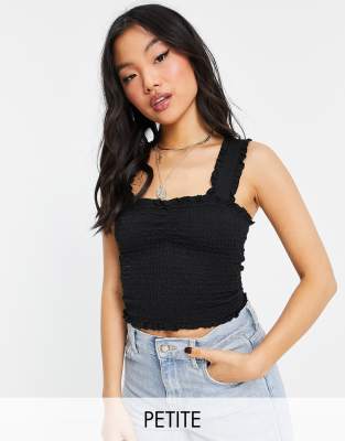 Topshop Petite crinkle frill vest in black