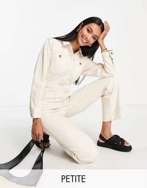 Topshop Petite denim boilersuit in ecru