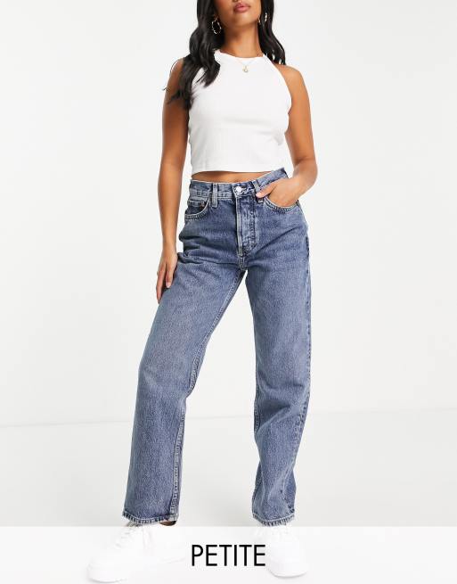 Topshop Petite mid rise straight Dad jeans in mid blue