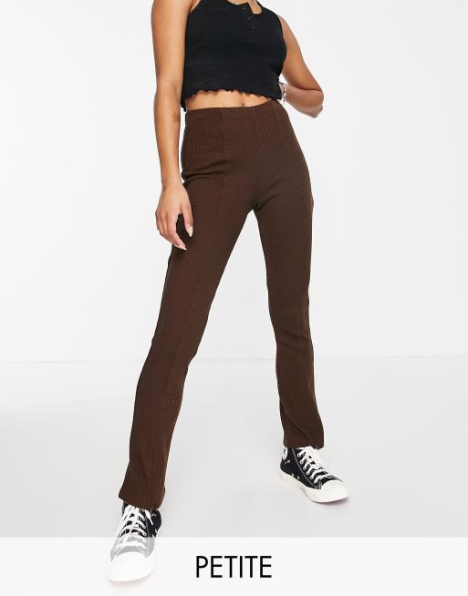 Topshop Petite waffle zip front split flared trousers in chocolate