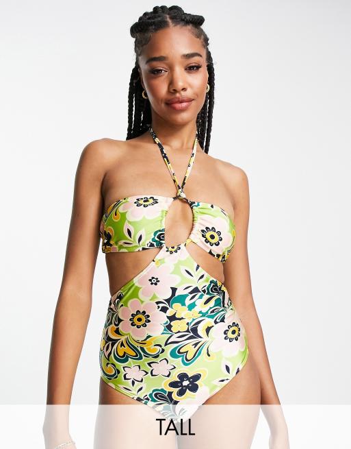Topshop Tall 60's floral keyhole cut out swimsuit