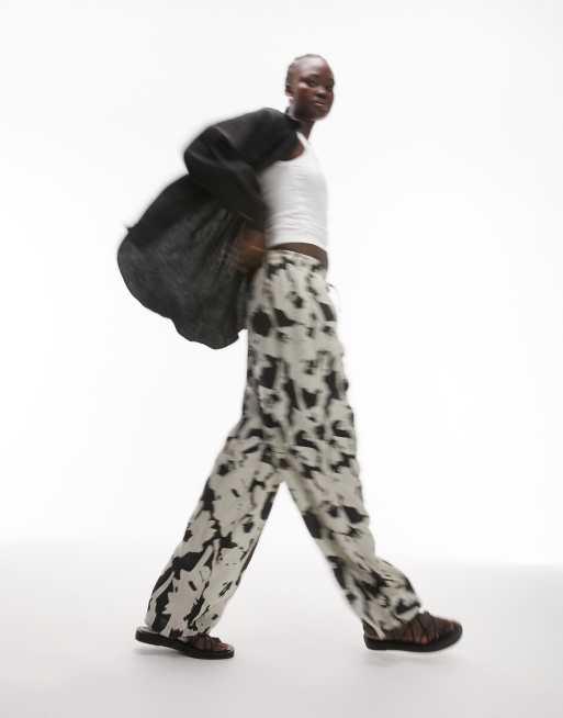 Topshop Tall co-ord floral printed linen balloon trouser in monochrome