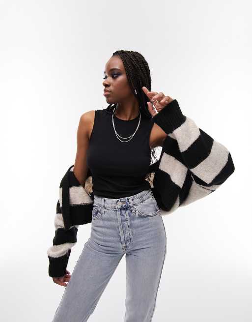 Topshop Tall sleeveless fitted tank top in black