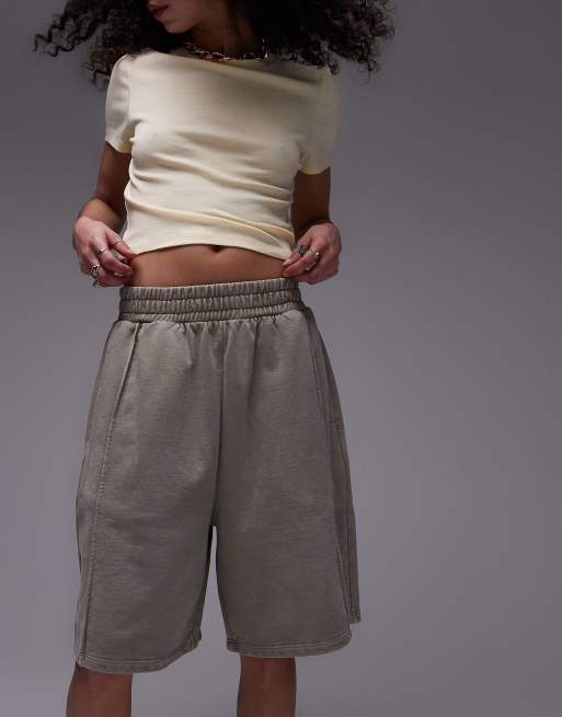 Topshop acid wash longline short washed khaki