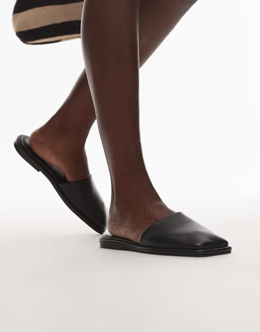 Topshop Almina real leather square toe mules in black