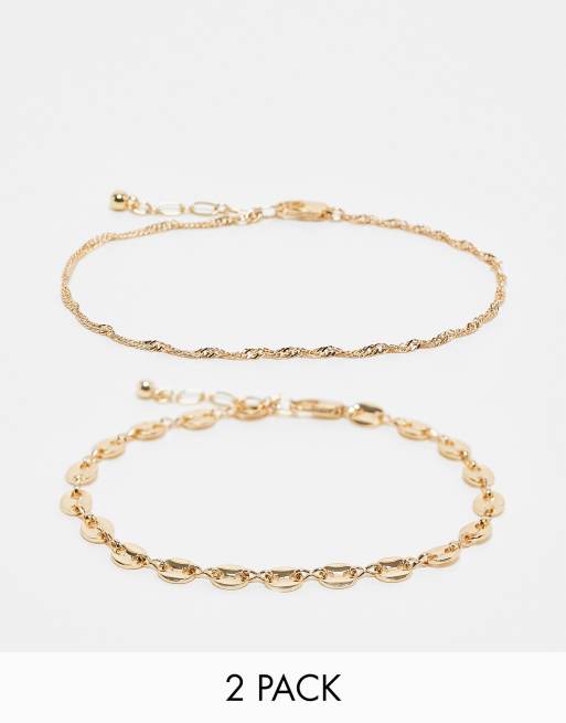 Topshop Arabella pack of 2 chain anklets in gold tone