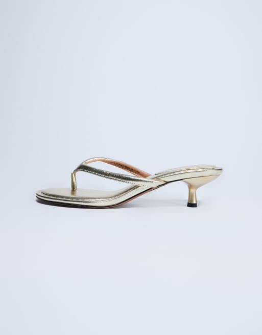 Topshop Axel toe thong mid heel sandal in gold
