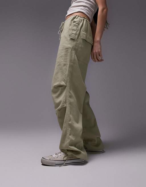 Topshop balloon parachute linen trouser in sage