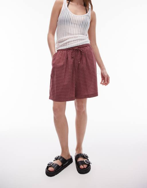 Topshop beach board short in burgundy check
