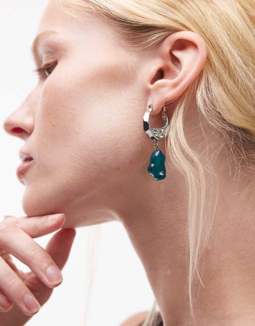 Topshop Billie molten hoop earring with stone in turquoise