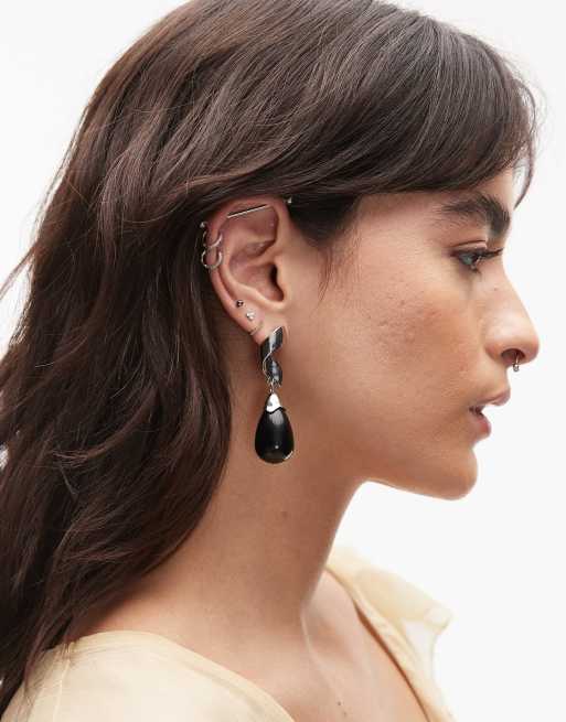 Topshop Blake spiral studd earrings with stone in silver