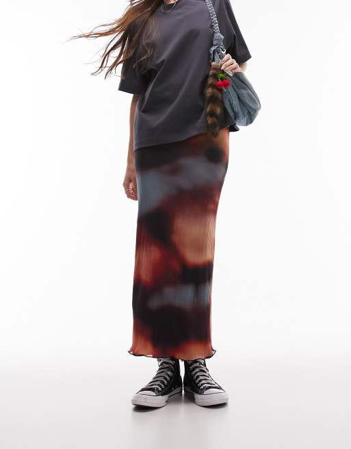 Topshop blurred tie dye crinkle plisse midi skirt in multi