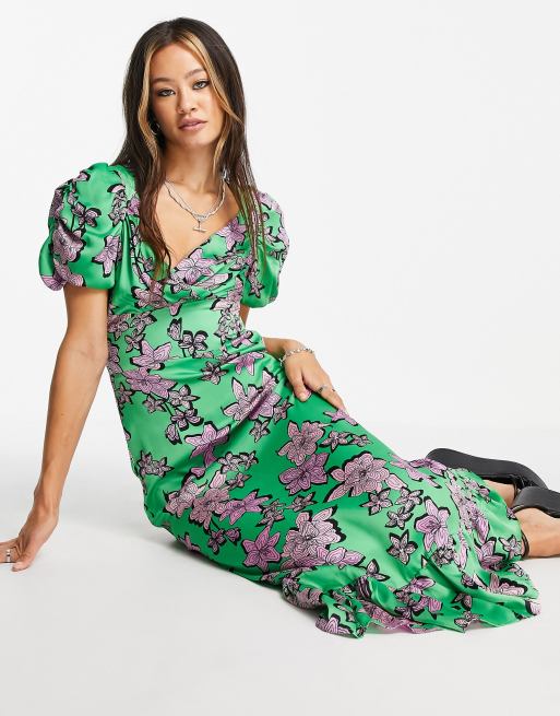 Topshop bold satin puff sleeve midi dress in multi floral