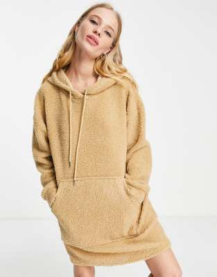 Topshop borg lounge hoodie in camel