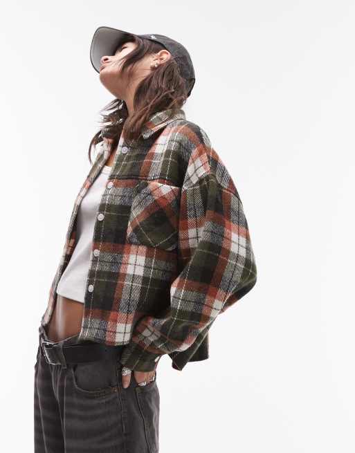 Topshop boxy cropped shirt in brushed check