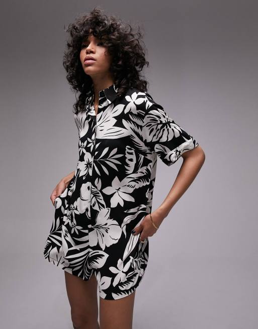 Topshop button down romper playsuit in tropical print