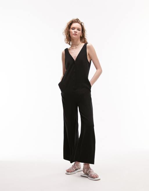 Topshop button through casual jumspuit in black