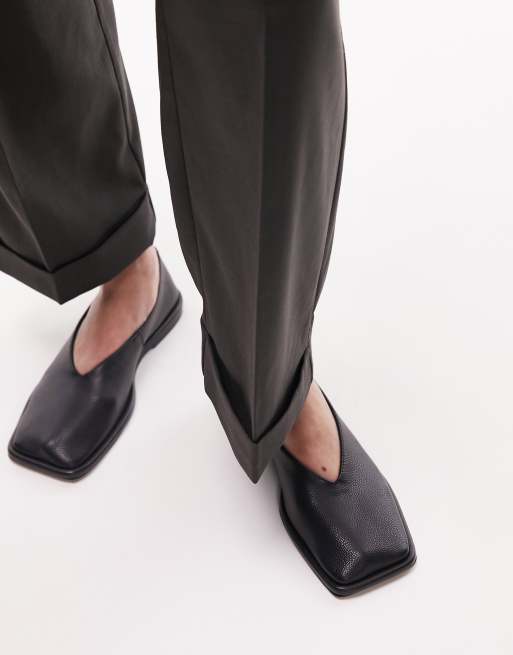 Topshop Charlotte leather square toe unlined flat shoe in black