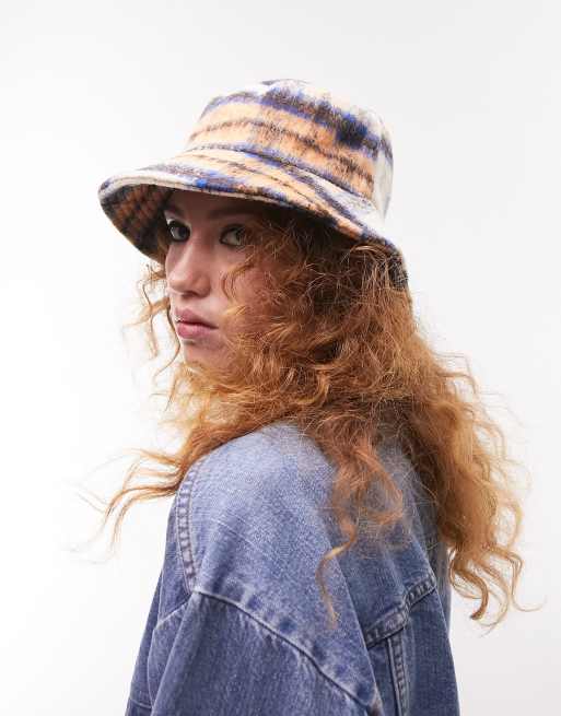 Topshop check bucket hat in cream