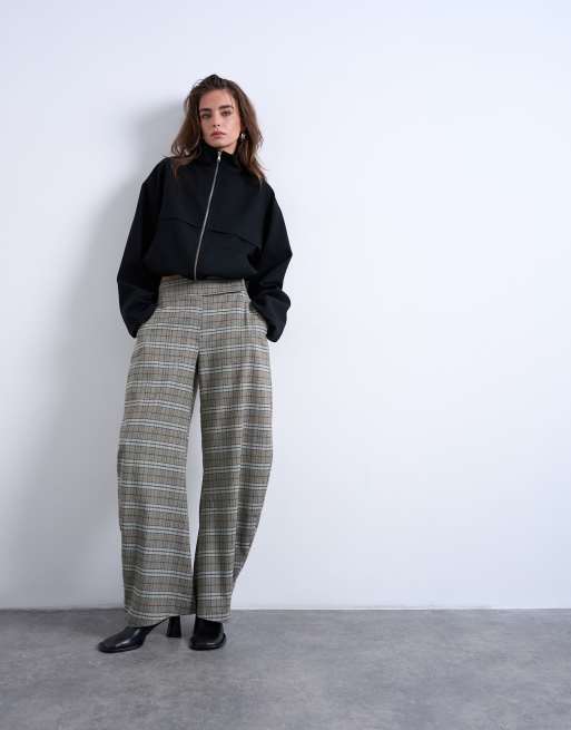 These trousers are crafted from woven fabric with a check print. They feature a high-rise waist, concealed fly, functional pockets and a barrel leg. They are complete with an adjustable hem that stacks at the ankle.Product Code: 153686907