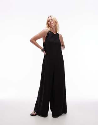 Topshop chuck on boxy jumpsuit in black cupro