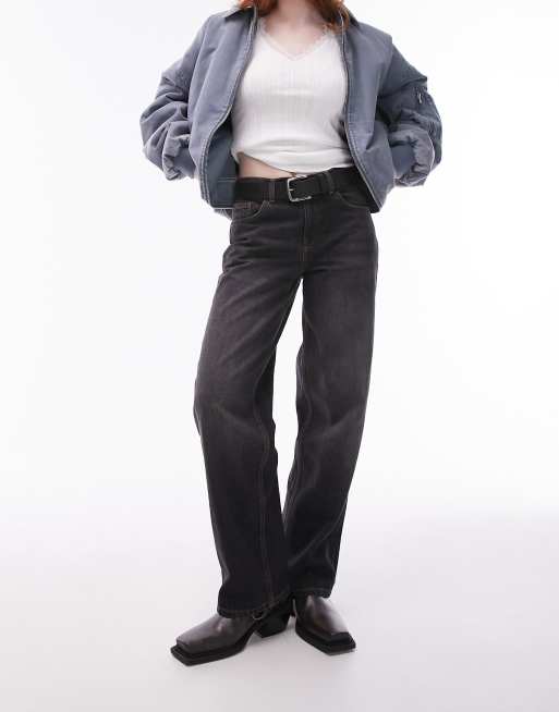 Topshop Cinch low rise relaxed jean in black cross hatch