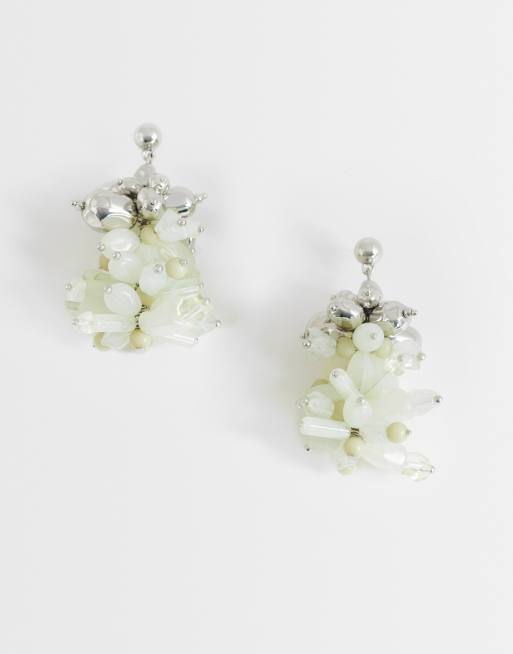 Topshop Cleo semi precious beaded drop earring in sage and silver
