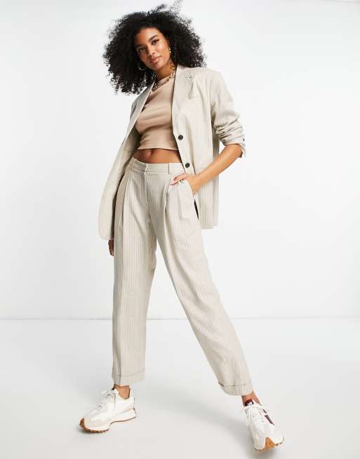 Topshop co-ord mensy peg stripe linen-blend trouser in stone