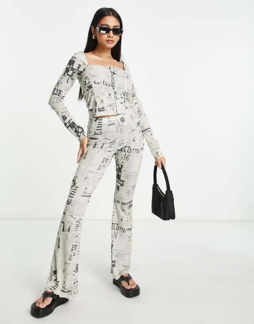 Topshop co-ord newspaper mesh flare trouser in mono