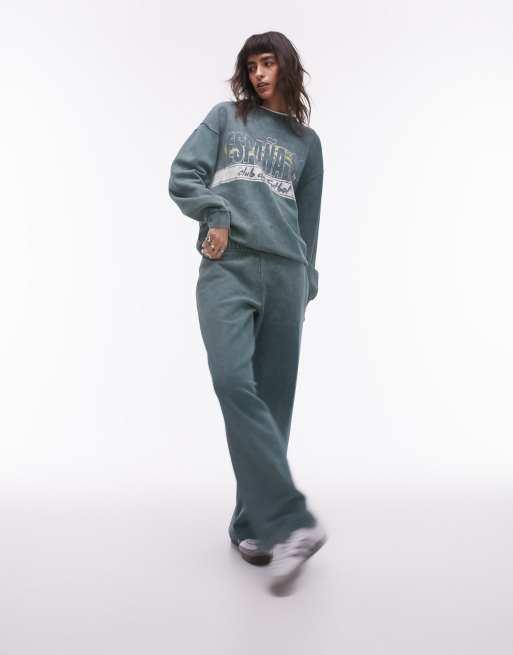 Topshop co-ord plain straight leg jogger in dark green