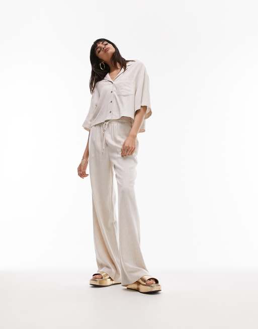 Topshop co-ord sand linen look wide leg relaxed trouser in neutral