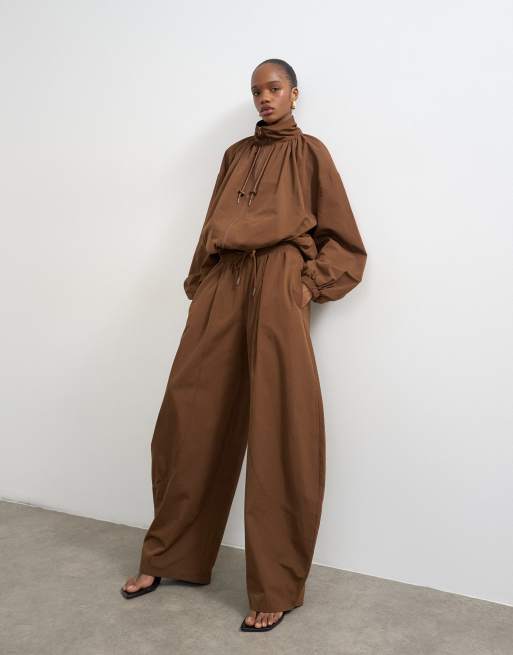 Topshop co ord techy lightweight ovoid trouser in chocolate
