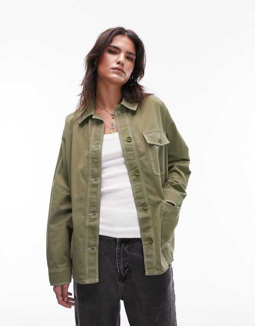 Topshop co-ord workwear shirt jacket with contrast stitch in khaki