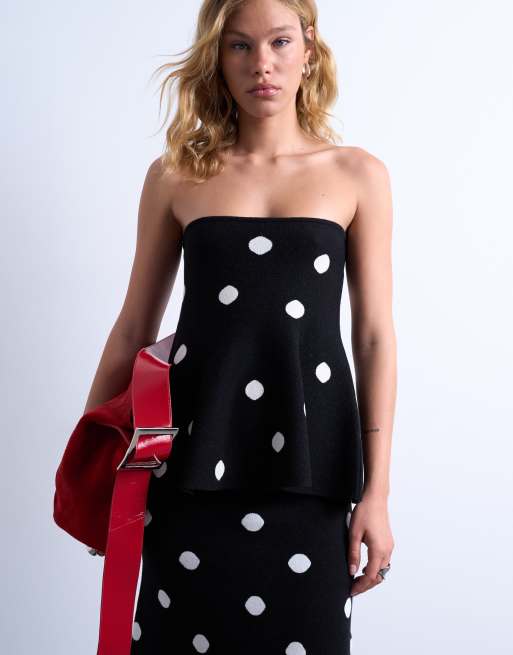 Topshop compact knit top co-ord in polka dot