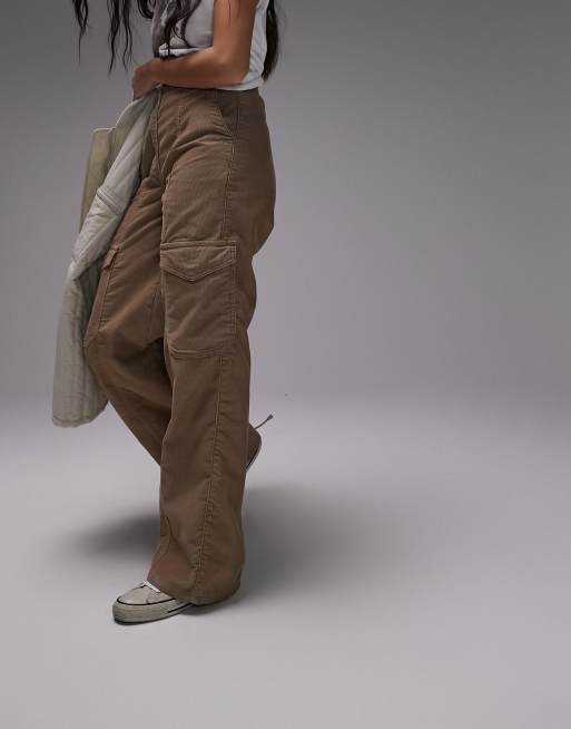 Topshop cord utility cargo straight leg trouser in beige