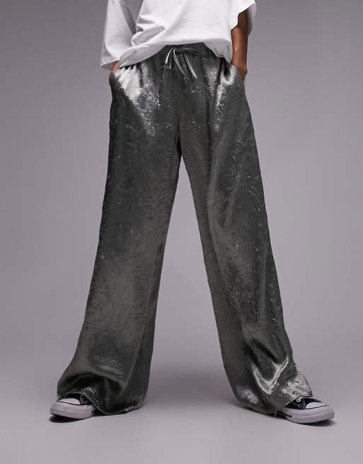 Topshop crinkle satin pull on wide leg in sage