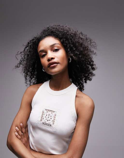 Topshop crochet embroidered vest in ecru