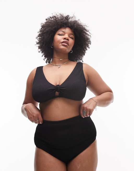 Topshop Curve crinkle high waist bikini bottoms in black